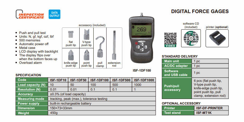 - Push/pull accessory: 6pcs (flat push tip, V-type push tip, point push tip, knife-edge push tip, pull clamp, extension rod)