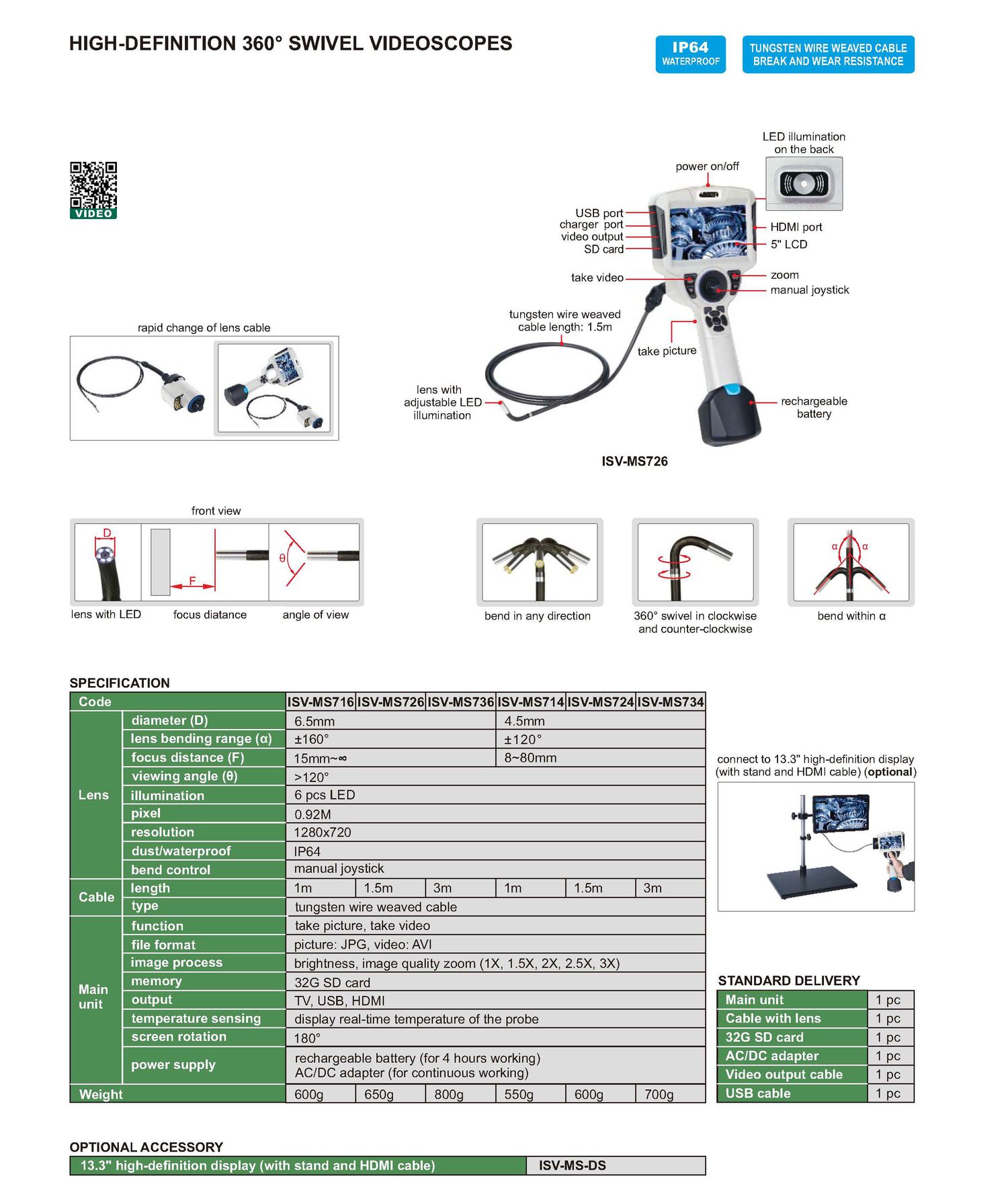 -13.3” high-definition display (with HDMI cable): ISV-MS-DS