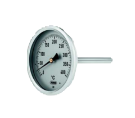 The measuring principle of the dial thermometer is based on a bimetal coil in a stainless steel or brass protection tube. If the temperature increases or falls, it turns and has a direct effect on the indicator via an axis. The indicator deflection is therefore proportional to the change of temperature.