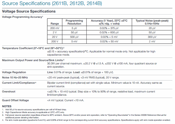 Voltage Source Specifications