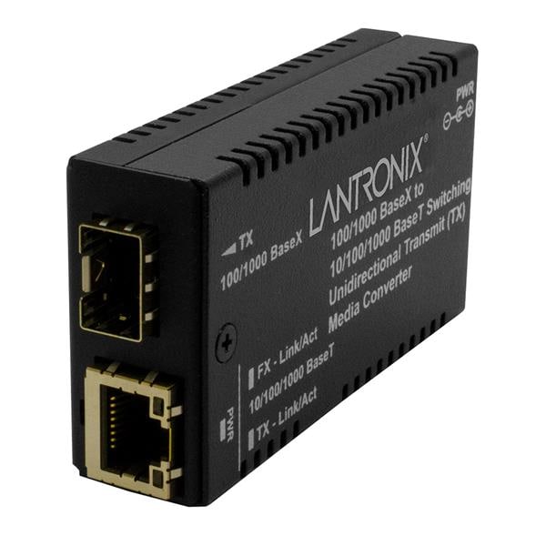 Lantronix M/GE-PSW-SFP-01-UTX-EU Media Converters 10/100/1000BaseTX to 1000Base SFP Uni Directional TX w/ -EU Pwr | EMINKH.COM