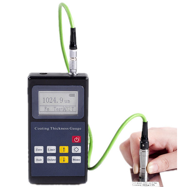 Magnetic Induction (Fe): Measuring the thickness of Non-magnetic coating on magnetic metal substrate, such as aluminum, chromium, copper, zinc, rubber, paint on the base of steel, iron, alloy and magnetic steel