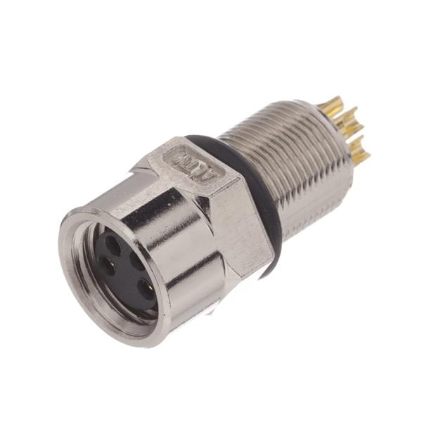 Amphenol LTW 8-04PFFS-SH7001 Straight M8 Circular Metric Connector, A Code, Metal, 3A, 04 pins, Female Connector, Female Contact, Hexagonal, M8*0.5, Screw Thread, Solder, Receptacle, Rear Fastened, Panel Thickness 4.5, IP67 Unmated