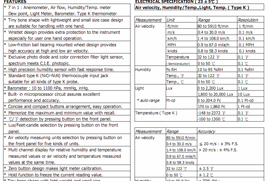 LUTRON LM9000 Anemometer, Air flow, Humidity/Temp., Dew point ,Light, Barometer, type K Temp | EMINKH.COM