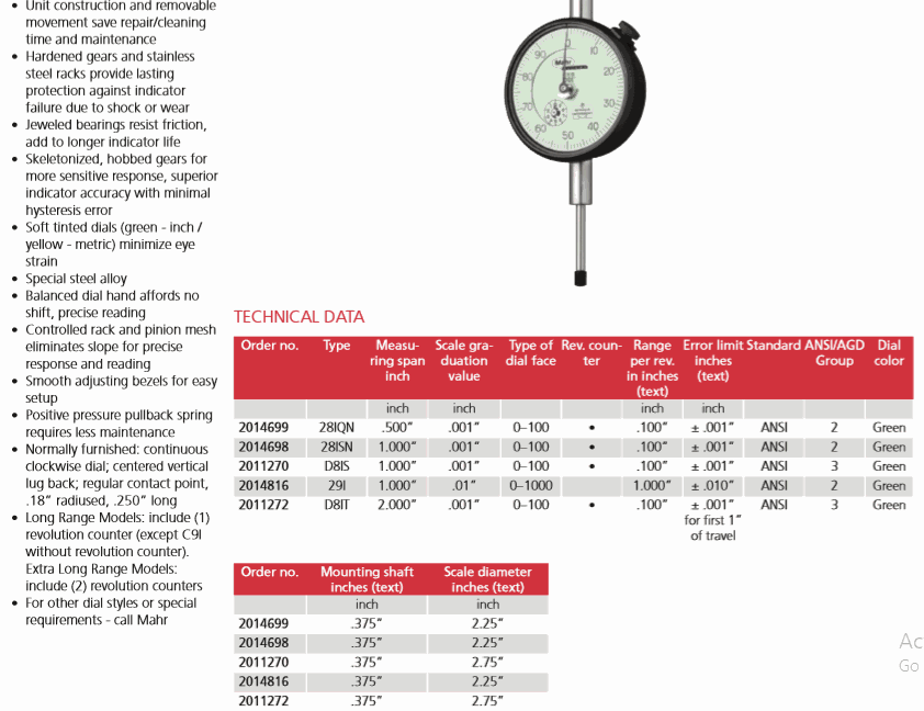 Mahr 2011270 Dial Indicator (D8IS, 1.000”) | EMINKH.COM