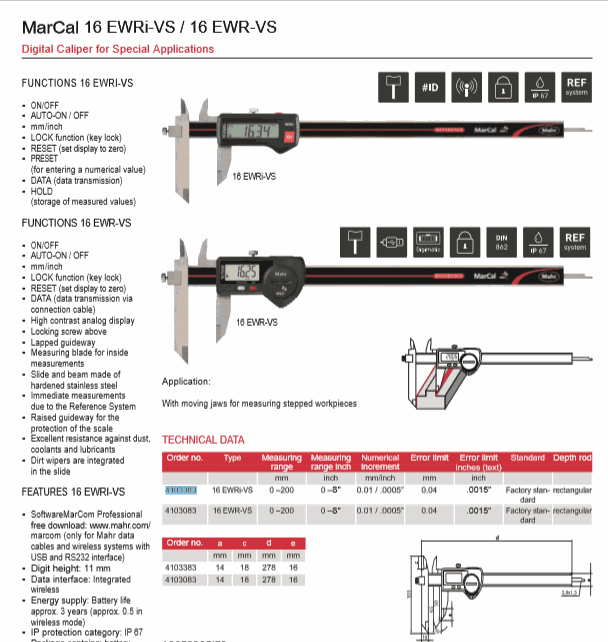 Mahr 4103083 Digital Caliper for Special Applications (16 EWR-VS, 0-200mm) | EMINKH.COM