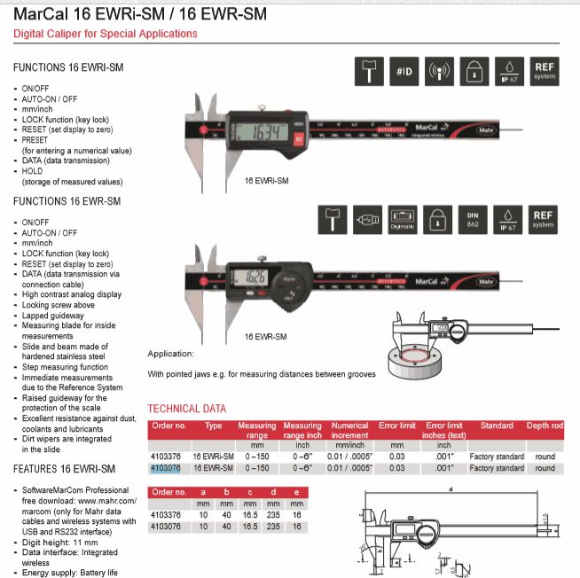Mahr 4103376 Digital Caliper for Special Applications (16 EWRi-SM,0-150mm) | EMINKH.COM