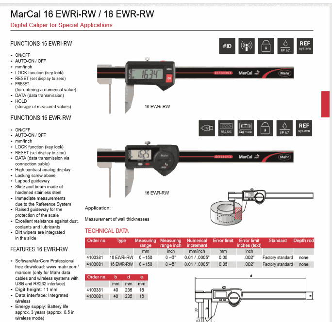 Mahr 4103381 Digital Caliper for Special Applications (16 EWRi-RW, 0-150mm) | EMINKH.COM