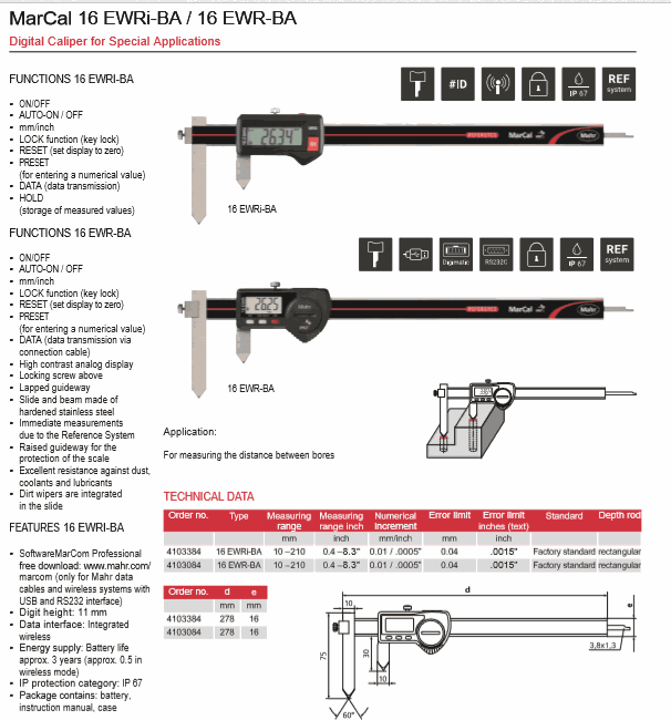 Mahr 4103384 Digital Caliper for Special Applications (16 EWRi-BA, 10-210mm) | EMINKH.COM