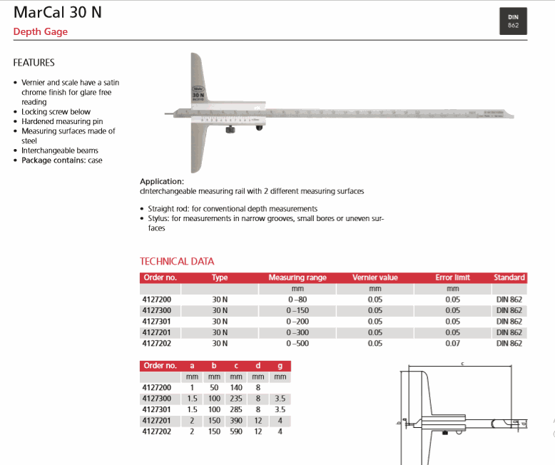 Mahr 4127200 Depth Gage (30N, 0-80mm) | EMINKH.COM