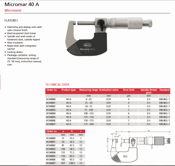 Mahr 4134004 Micrometer (40A, 100-125mm) | EMINKH.COM
