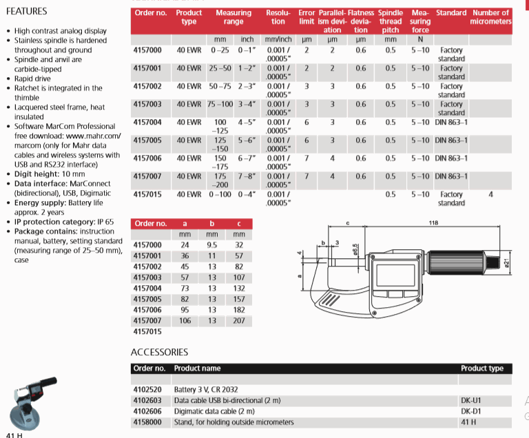 Mahr 4157002 Digital Micrometer (40 EWR, 50-75mm/2-3") | EMINKH.COM
