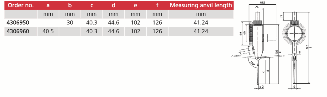 Package contains: case, instruction manual, spanner for changing the styli, stylus dia. ø 2 mm, mounting shaft 800a3/8