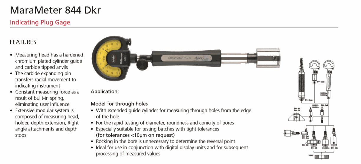 For rapid testing of diameter, roundness and conicity of bores