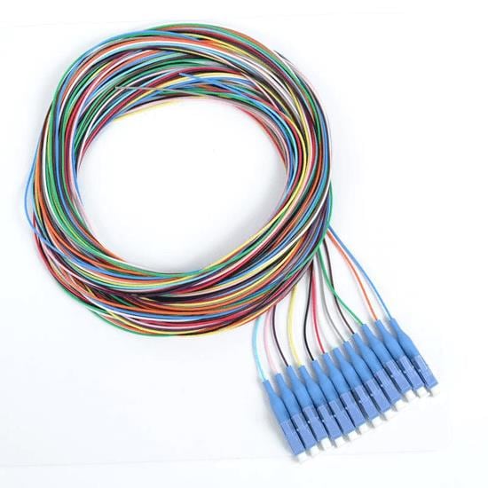 Megladon Manufacturing 12DX111-003M Fiber Optic Cable Assemblies Singlemode 12F LCUPC Fiber Optic Pigtail Set, 900um, 12 Colors, 3 Meters
