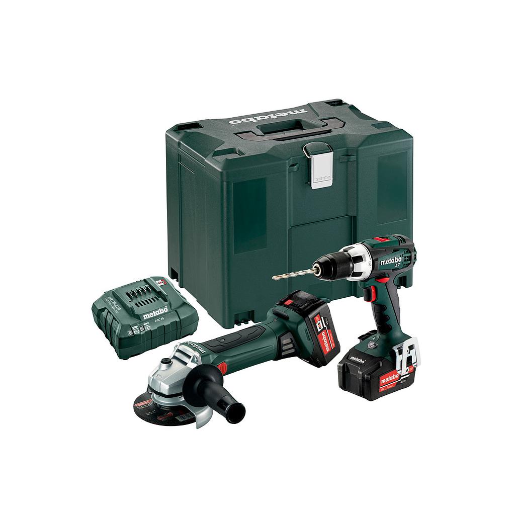 Cordless Drill/Screwdriver BS 18 LT, Cordless Angle Grinder W 18 LTX 125 Quick, 2 x Li-Power Battery Packs (18 V/4.0 Ah), Charger ASC 55, MetaLoc IV