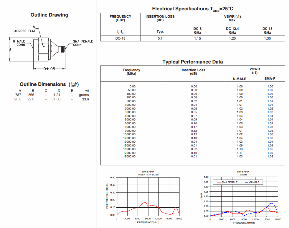 Mini-Circuits NM-SF50+ Coaxial Adapter, N-MALE to SMA-F (50Ω, DC to 18 GHz) | EMINKH.COM