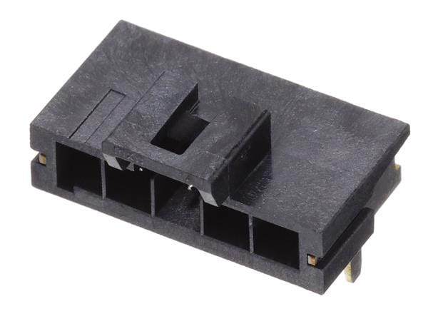 Molex 172310-3105 Receptacle Housing Ultra-Fit Right-Angle Header with Solder Nail, 3.50mm Pitch, Single Row, 5 Circuits, Tin (Sn) Plating, Black, Glow-Wire Capable