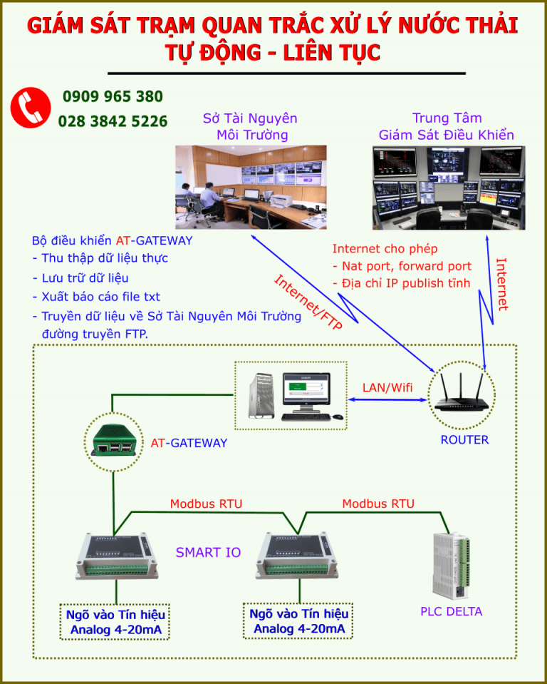 The AT-Gateway unit will “package” the webserver software, and read-record such signals in the system as: SMART IO, PLC,…; then send the “*.txt” file to the Department of Natural Resources and Environment.