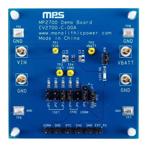 Monolithic Power Systems (MPS) EV2700-C-00A Battery Management 26V, 1A, Linear Charger with Configurable JEITA Evaluation Board