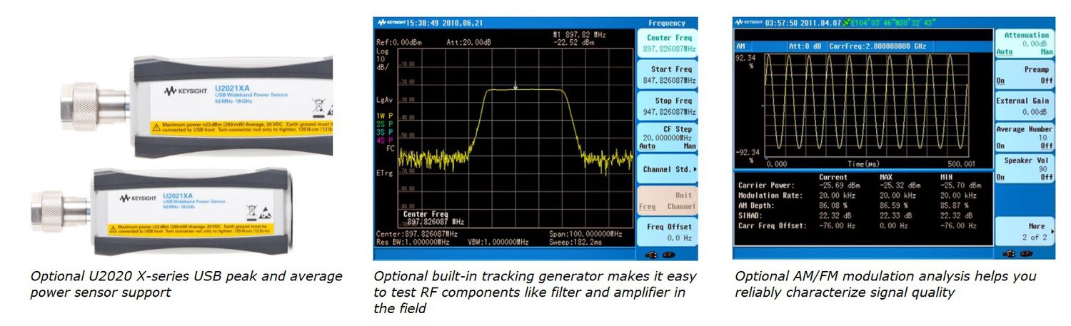 Optional built-in tracking generator measures two-port transmission of filter and amplifiers to validate your system is working correctly before you begin evaluating sources of interference