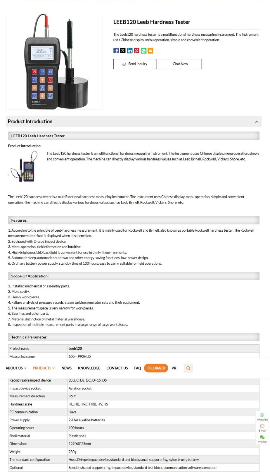 Hardness scale: HL, HB, HRC, HRB, HV, HS