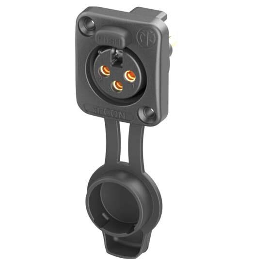 NEUTRIK NC3FDXX-TOP Connectors RECP airtight series 3 pole female - solder - black/gold, front mount, with cap | EMINKH.COM