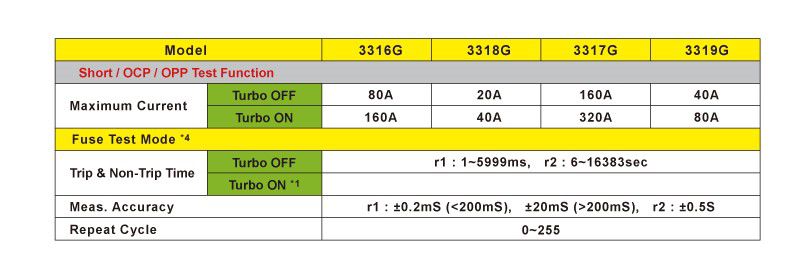 Model list of 3310G Series Electronic Load with Turbo mode.