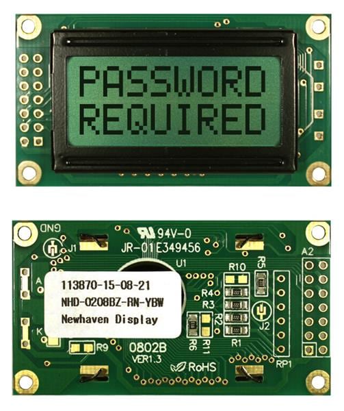 Newhaven Display NHD-0208BZ-RN-YBW LCD Character Display Modules STN - Y/G 2x8 Reflective No Bklght | EMINKH.COM