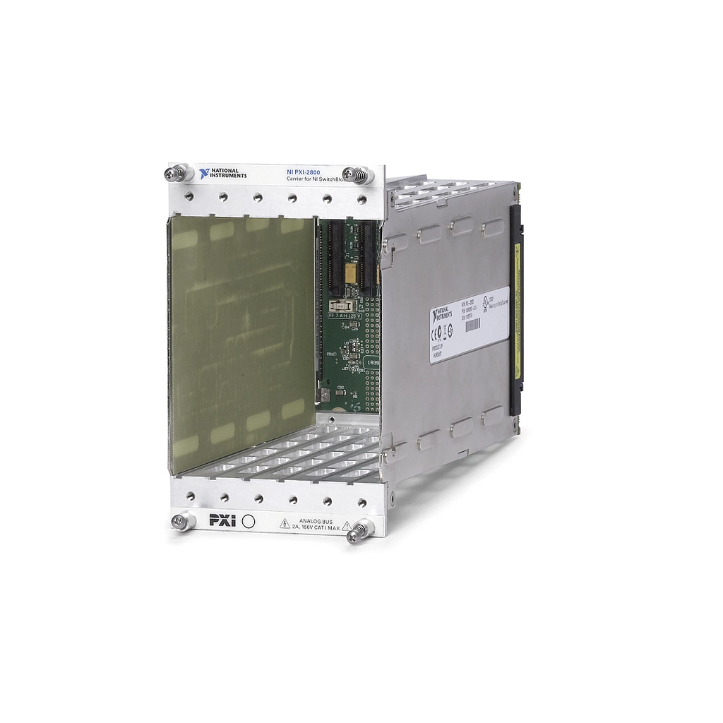 Holds up to six Matrix Modules for SwitchBlock that you can use to create large matrices with more than 8,000 crosspoints in a single PXI chassis.
