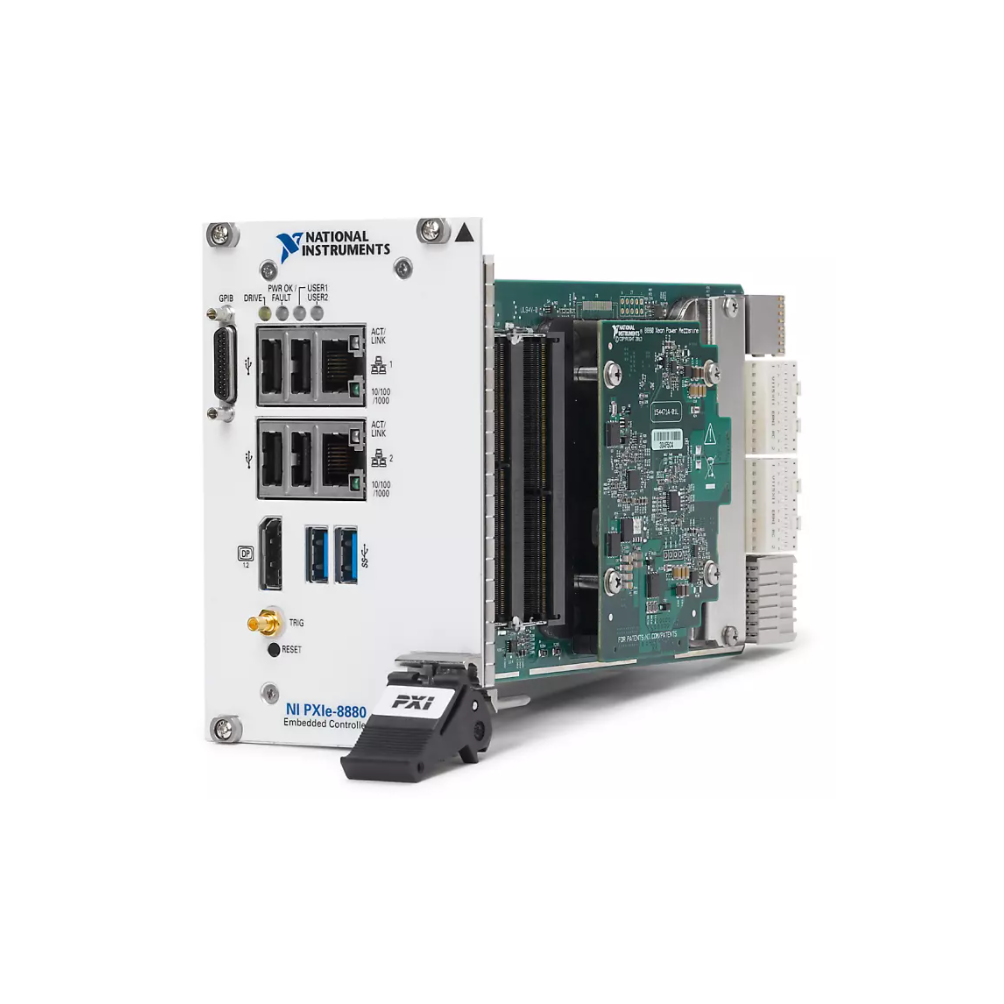 PXI Controllers come with standard features such as an integrated CPU, hard drive, RAM, Ethernet, video, keyboard/mouse, serial, USB, and other peripheral I/O. They provide up to 8 GB/s system throughput and 2 GB/s slot throughput.