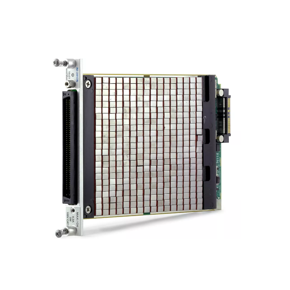 The Matrix Module for SwitchBlock is for use with the PXI Carrier Module for SwitchBlock and can operate as an individual relay card, can combine with other Matrix Modules for SwitchBlock in the same PXI Carrier Module for SwitchBlock, and can combine with other Matrix Modules for SwitchBlock in other PXI Carrier Modules for SwitchBlock in the same PXI chassis. Each Matrix Module for SwitchBlock comes in an A-type version, which serves as the first matrix building block and offers row and column access through the front connector, and a B-type version, which serves as an expansion module and only provides column access through the front connector. Typically, SwitchBlock systems contain one A-type module and numerous B-type modules.