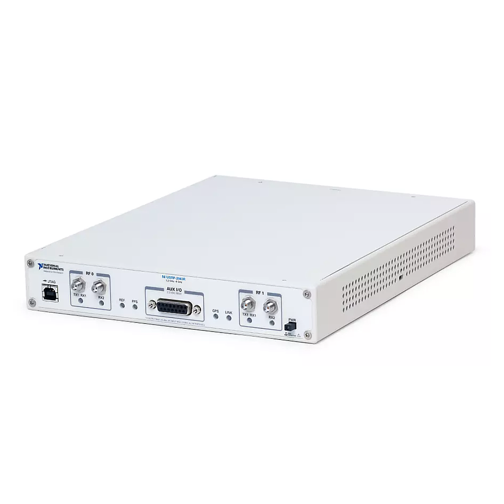 The USRP Software Defined Radio Device is a reconfigurable RF device that includes a combination of host-based processors, FPGAs, and RF front ends. The USRP Software Defined Radio Device include options that range from lower cost options with fixed FPGA personalities to high-end radios with a large, open FPGAs and wide instantaneous bandwidth. These devices can be used for applications such as multiple input, multiple output (MIMO) and LTE/WiFi testbeds, SIGINT, and radar systems.