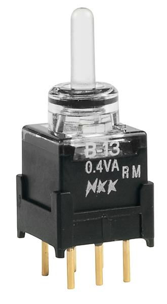 NKK Switches B13JJPCF Subminiature Fully Illuminated Toggles SPDT ON-OFF-ON 0.4VA RED/GRN STRAIGHT PC | EMINKH.COM
