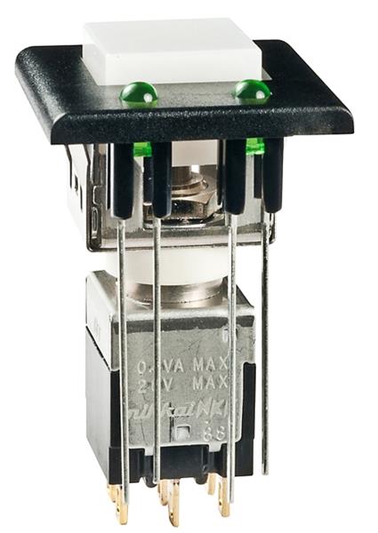 NKK Switches EB2085G-B-J33AFF Light Touch Switches DPDT GOLD CONT WHITE BLK BEZEL GRNGRN LED | EMINKH.COM