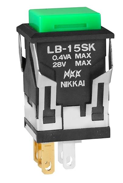 NKK Switches LB15SKG01-F Pushbutton Switches SPDT ON-(ON) BLACK SQUARE GREEN CAP | EMINKH.COM
