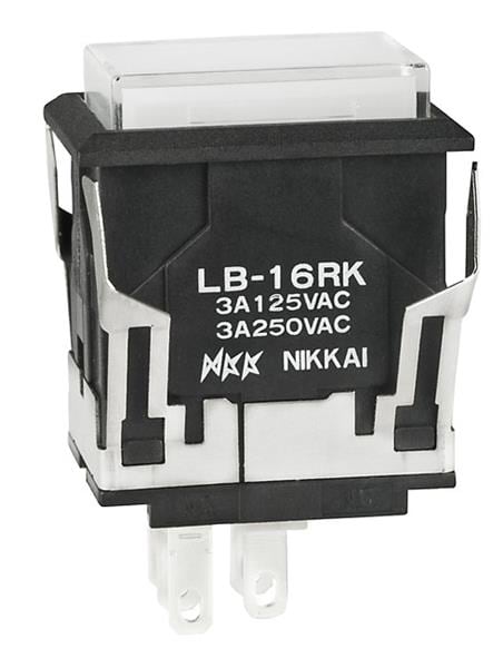 NKK Switches LB16RKW01-5F24-JB Pushbutton Switches ON-ON RECT BLACK 12V GRN LED CLR/WHT CAP | EMINKH.COM
