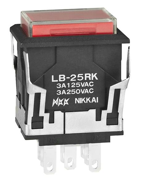 NKK Switches LB25RKW01-5C12-JC Pushbutton Switches ON(ON) RECT BLK 12V RED LED CLR/RED CAP | EMINKH.COM