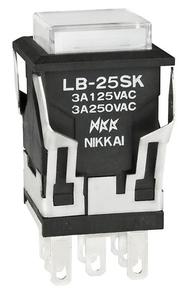 NKK Switches LB25SKW01-5F12-JB Pushbutton Switches ON(ON) SQ BLACK 12V GRN LED CLR/GRN CAP | EMINKH.COM