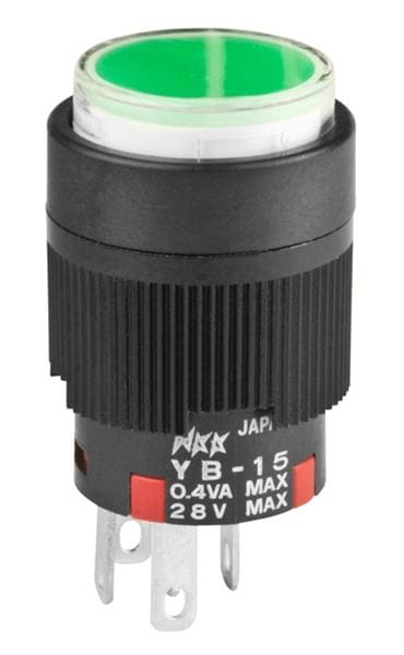 NKK Switches YB15CKG01-5F-JF Pushbutton Switches ON(ON) RND BUSHING GRN LED CLR/GRN CAP | EMINKH.COM