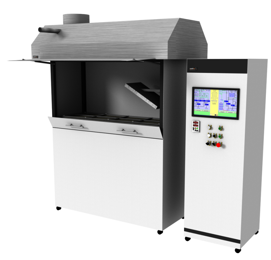 Test chamber: With calcium silicate lining, flap with fire resistant glazing, extractable mounting plate for sample holder, exhaust with light measurement system