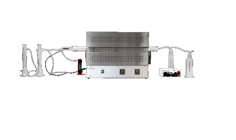 Transparent quartz combustion tube with glass conical joints at each end, length 900 mm, diameter 40 mm (17101021)