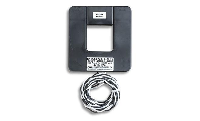 The Magnelab AC Current 600 Amp AC Current Transformer or CT (Magnelab part # SCT-2000-600) is mounted around a current carrying wire to measure AC Amperage. This CT provides 333mV output proportional to current and is used with the FlexSmart TRMS Module for True RMS measurement of sinusoidal and non-sinusoidal waveforms. The result is accurate current measurement for many types of equipment, including variable frequency drives and switched power sources. One or two CTs can be used with each FlexSmart TRMS Module. For use with HOBO H22, U30, and RX3000 Series Data Loggers