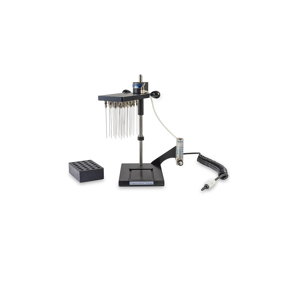 Organomation 24 Position MICROVAP Nitrogen Evaporator (None heating platform; 21.6 x 33 x 35.6 cm; 24 sample plates) | EMINKH.COM