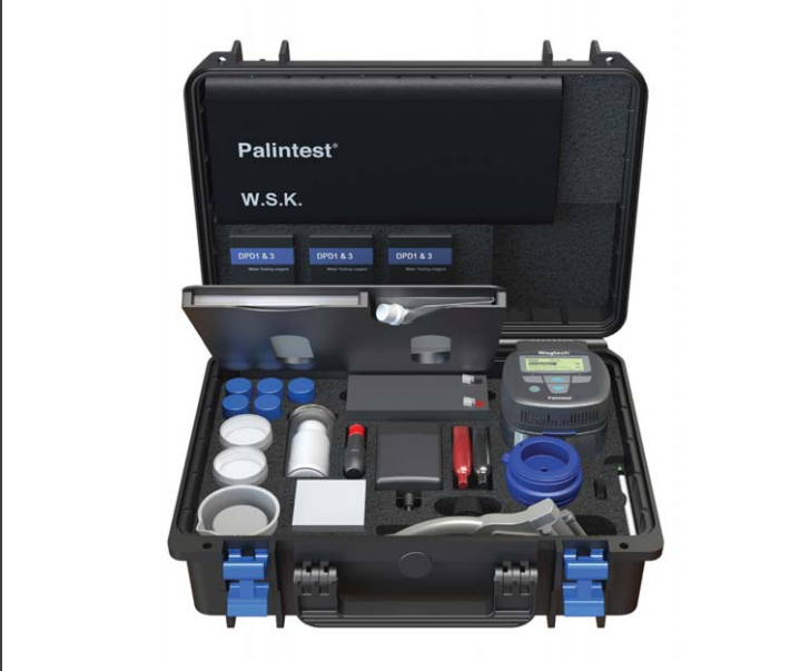 • Polypropylene 250 mL beaker, quick start prompt cards, sterilisable integrated work surface. Contour Comparator and discs, 4 comparator cuvettes, comparator reagents for 250 tests for Free and Total Chlorine. Double length Turbidity Tube. Pocket pH Sensor and pH calibration buffers. Cuvette brush, Dilution tube, crush/stir rods, De-ion pack, instructions
