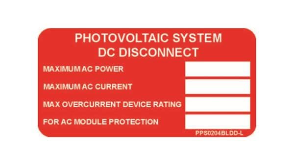 Panduit PPS0204BLDD-L Photovoltaic System DC Disconnect Solar Label, 2.00" H x 4.00" W, 'Photovo | EMINKH.COM