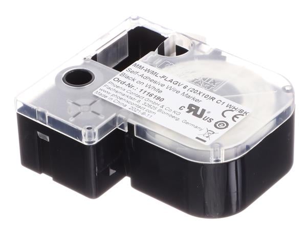 PHOENIX CONTACT 1116190 Cable Marker Cable marking flags Roll white/black unlabeled can be labeled with: THERMOMARK GO mounting type: adhesive lettering field size: 20 x 10 mm Number of individual labels: 145
