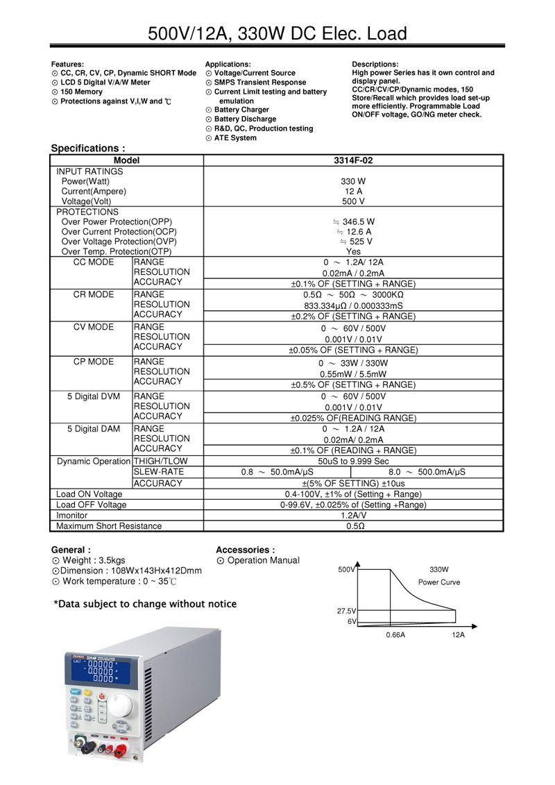 PRODIGIT 3314F-02 DC Electronic Load (500V, 12A, 330W) | EMINKH.COM