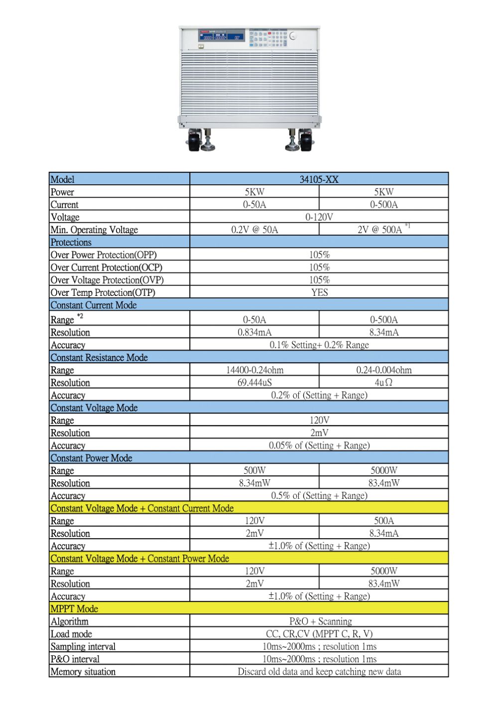 Power : 0 ~ 500W/5000W, ±0.125%