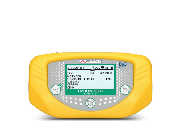 ACCESSORIES: Mains power adapter, F to BNC/DIN/F adapters, Mains cord, Car lighter adapter, TVHUNTER+ carrying suitcase, TVHUNTER + carrying